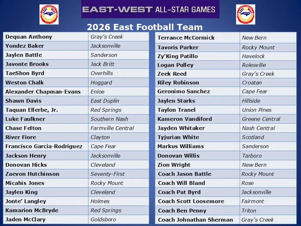 East Coaches: Class of '26 (playing in Dec. '25)